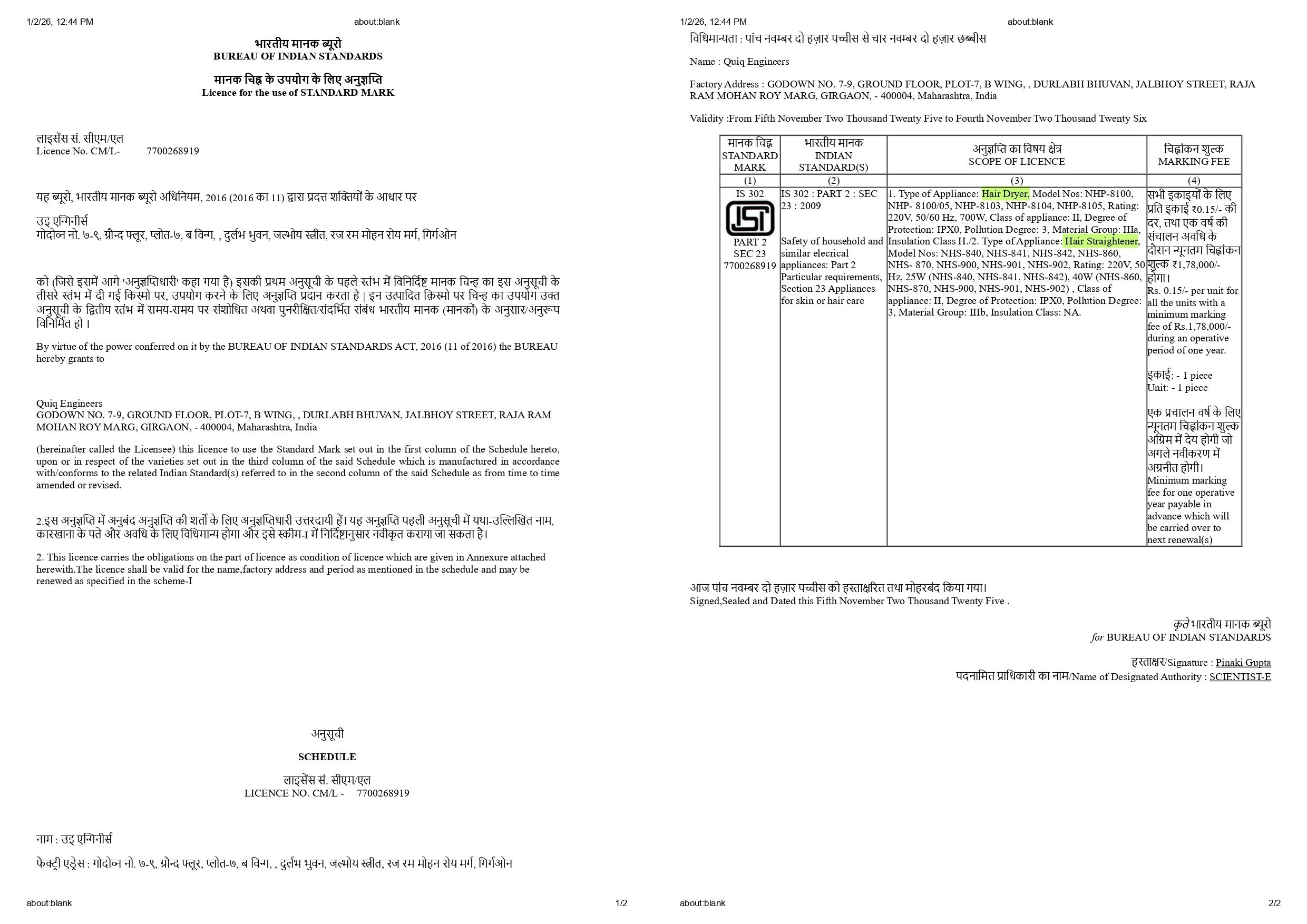 BIS Certificate Image URL