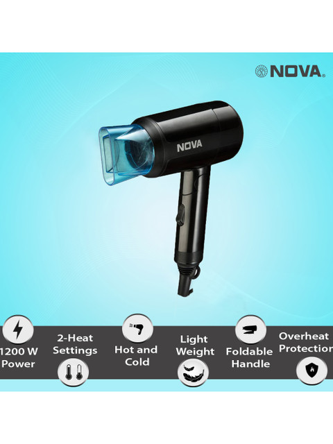 NOVA NHP 8105 Silky Shine Hot & Cold Foldable 1200W Hair Dryer – Black & Blue