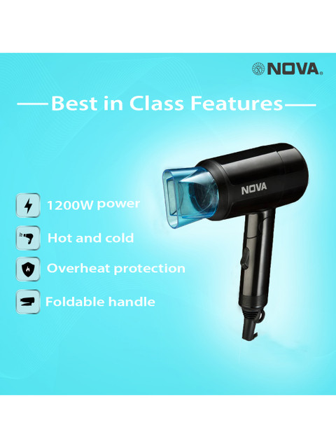 I am absolutely delighted with my new Nova hair dryer from Myntra! It’s lightweight, easy to hold, and dries my hair quickly without making it frizzy. The hot and cold settings are perfect for styling and protecting my hair from heat damage. I love the foldable design—it saves space in my bag and makes it ideal for travel. The build quality feels strong and premium for the price, and it works quietly too. Overall, it’s a stylish, powerful, and budget-friendly hair dryer that makes my daily routine so much easier. Highly recommended for anyone looking for great performance at an affordable price