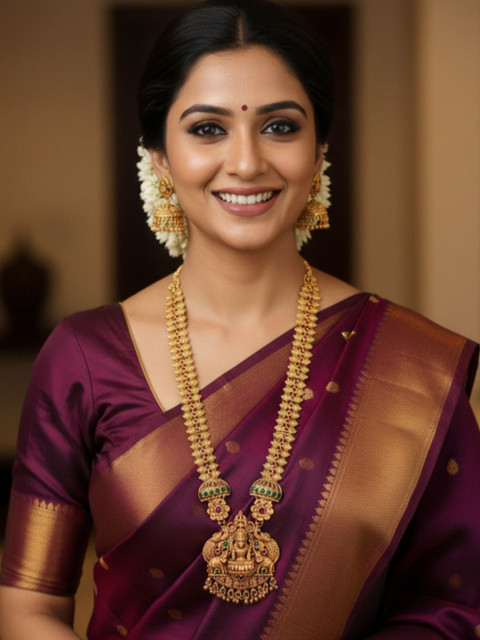 Gold-plated temple necklace has artificial stone-studded and beaded detail