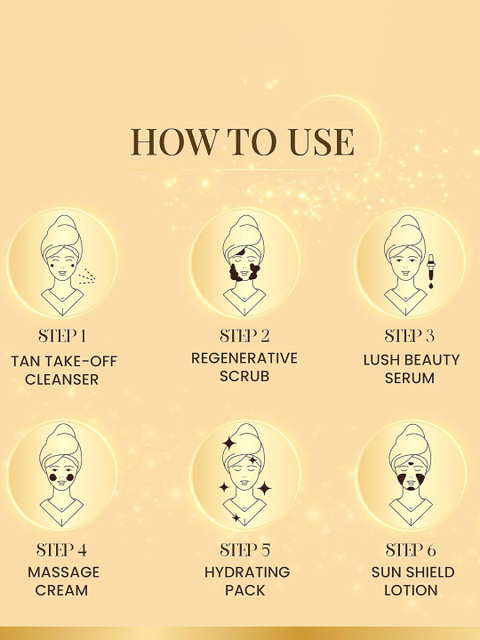 Apply an appropriate amount to your face, neck, and body. After 10 to 12 minutes, give it a gentle massage and wash it away.On moist skin, apply evenly, then wait for 5 to 10 minutes. Rinse after 30 seconds of gentle massaging.Layer evenly on the face and neck. Till it is fully absorbed, massage.Apply it to your entire clean face and neck. 10 minutes of gentle massaging followed by damp towel removal.Over the face and neck, spread an even layer of the pack. Let it 10 to 15 minutes to dry. Use wet cotton to clean off after moistening with water.Apply plenty of lotion to your face and neck. Till the skin is fully absorbed, gently massage