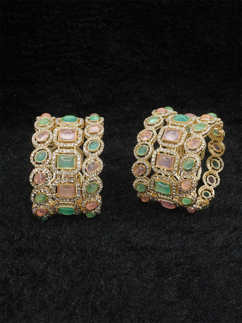 Set of 6 Gold toned, pink & green bangles, Gold plated
