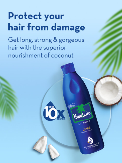 Parachute Advansed Gold Coconut Hair Oil is made with the finest handpicked coconutsWith the goodness of Pure coconut oil and Vitamin E, it nourishes your hair from within to make them long, strong and gorgeousIt goes 10 layers deep, nourishing it from within