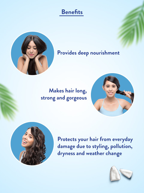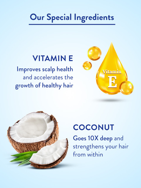 Coconut oil: It goes deep into your hair follicles, protecting it from breakage.Vitamin E: It has natural antioxidant properties that help in maintaining hair growth