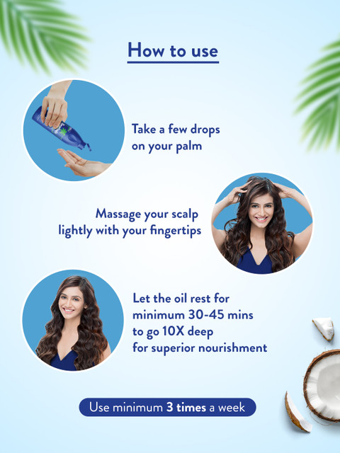 Take a few drops of hair oil on your palmApply directly on the scalp, massage gently for some time with fingertipsKeep it overnight for better results
