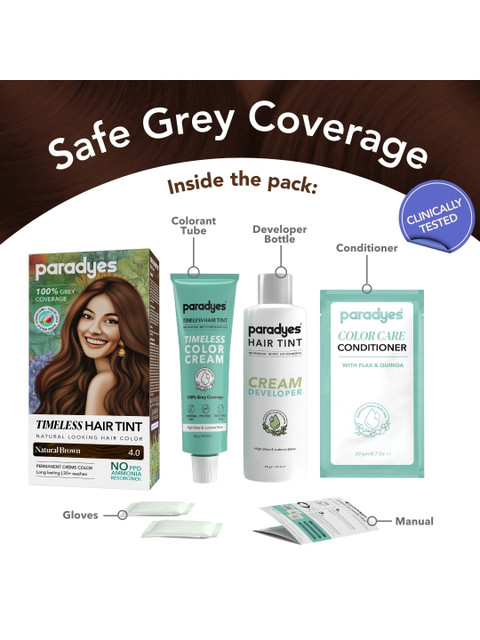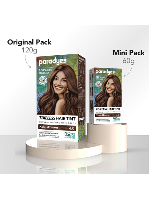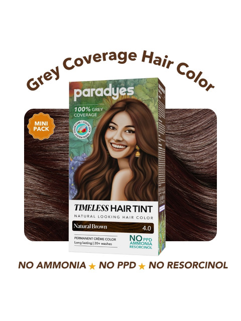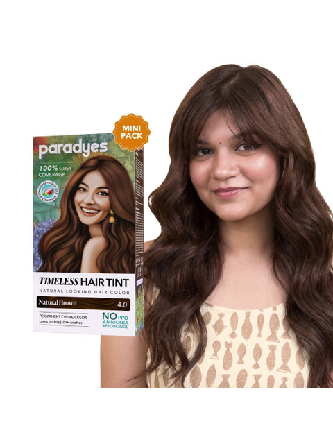 Introducing Paradyes Mini Natural Brown Timeless Hair Tint – your solution for seamless grey coverage that blends beautifully with your natural hair. Our gentle formula, free from PPD, ammonia, and resorcinol, ensures vibrant, long-lasting color. Each pack comes with our exclusive Color Lock System, conditioner designed to leave your hair soft, shiny, and beautifully nourished. Embrace the perfect harmony of nature and science for a timeless look, only with Paradyes.