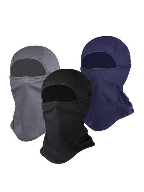 Set of 3 grey, black & blue solid balaclava riding face mask