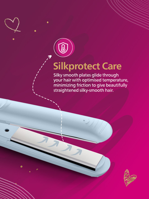 SilkPro Care- style and care with the Philips SilkProCare technology. Plates smoother than silk glide through your hair with optimized temperature, minimizing friction and resulting in less heat exposure. For beautifully straightened silky-smooth hair.Keratin infused plates for active care- Keratin is hairs essential ingredient which makes them strong, healthy and gorgeous looking. The ceramic plates are enriched with keratin to actively care for your hair and leave them looking perfectly silky smooth.Easy versatile styling- Get perfect salon-like straight hair, curls or waves,just as you like it.210C styling temperatureCool Tip for easy and safe use- The tip of the styler is made from a special heat insulating material to keep it cool. You can safely hold it while youre straightening or curling to create beautiful straight hair, curls, waves and bouncy styles.Heat resistant roll out mat included for easy storage and carrying.Rapid heat-up- The straightener has a fast heat-up time, being ready to use in just 60 seconds.Swivel cord- The swivel cord technology conveniently rotates the cord and prevents unnecessary tangles.This straightener is ready to use anywhere in the world and is compatible with 110-240 voltage.