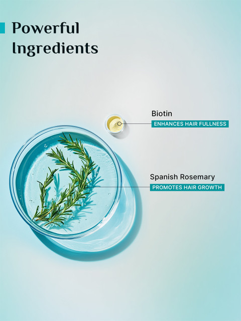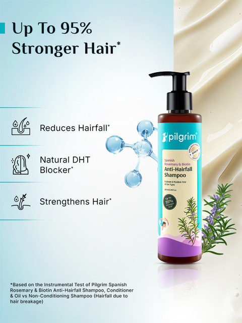 VeganCruelty FreeParaben FreeSulphate FreeChemical FreeSLS FreePETA CertifiedReduces Hairfall: Spanish Rosemary contains rosmarinic acid, which stimulates hair follicles for hair growth, reducing hairfall.Natural DHT Blocker: Spanish Rosemary blocks the activity of Dihydrotestosterone (DHT), a hormone linked to hair loss.Strengthens Hair: This anti-hairfall shampoo, enriched with Spanish Rosemary and Biotin, strengthens hair by up to 95%*.
