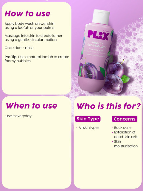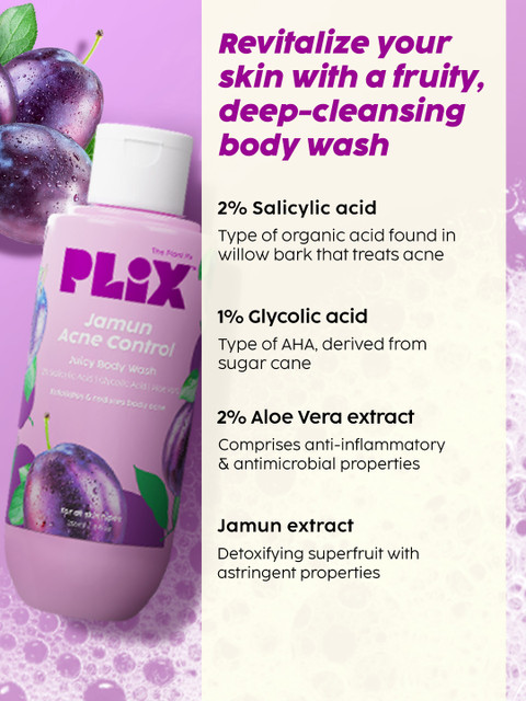 Jamun Acne Control 2% Salicylic Acid 2% Aloe Vera Extract & 1% Glycolic Acid Juicy Body Wash-263ml