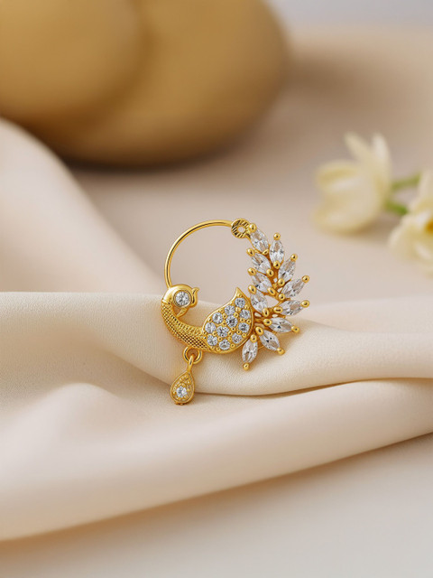 Elegant drop nose ring with intricate stone detailing, perfect for festive wear, weddings, and traditional looks with a modern touch.