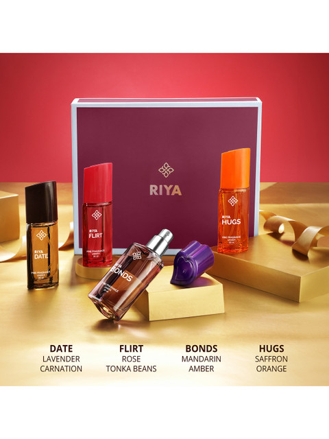Riya perfumes never disappoint! Each fragrance has its own charm — Riya date is bold and confident, Riya flirt feels soft and sweet, Riya bonds Wear gives that perfect festive vibe, and Riya hugs is simply enchanting. A perfect combo for every mood and occasion