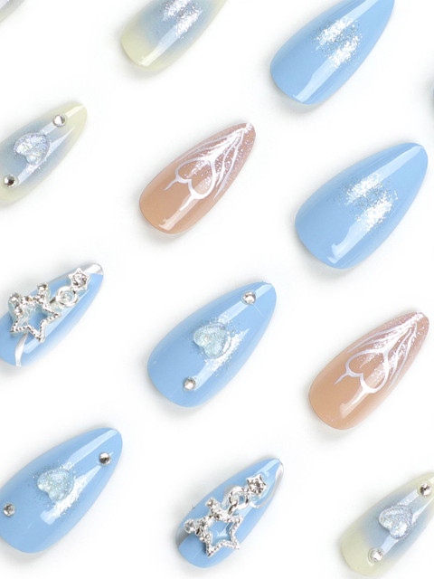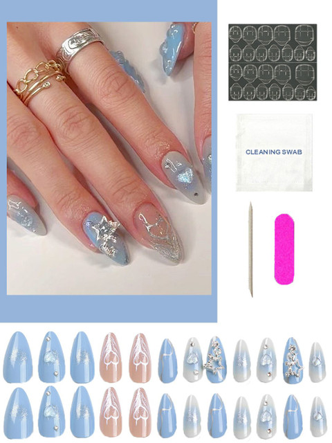 3 reviews for Secret Lives Set Of 24 Glossy 3D Heart Stud & Accessories Design Artificial Nails – Blue