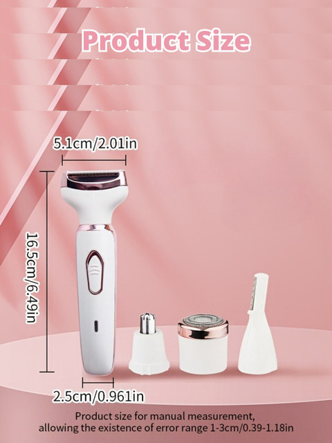 | How-to-Use | Charge the trimmer: before first use, fully charge the trimmer with the provided usb cable. the led indicator will light up when charging is complete.select the attachment: choose the right attachment for your grooming needs: nose hair trimmer, eyebrow shaper, facial shaver, or bikini hair trimmer. secure it to the trimmer by snapping it into place. turn on the trimmer: slide the power switch to the "on" position. the trimmer will start with a gentle, quiet operation. grooming process: nose hair: insert the nose hair trimmer gently into the nostril and move it in a circular motion to trim unwanted hair.eyebrow shaping: carefully shape and trim your eyebrows with the eyebrow shaper, moving the trimmer in the direction of hair growth for best results. facial shaving: glide the facial shaver over the area where you want to remove hair. use smooth, even strokes for a close shave.bikini trimming: use the bikini trimmer attachment to remove unwanted hair precisely. gently guide the trimmer along the desired area. clean the attachments: after use, detach the attachments and rinse them under running water. allow them to dry completely before reattaching or storing.store the trimmer: keep the trimmer in a cool, dry place. its compact design makes it easy to store in your purse, travel bag, or drawer. tips for best results: always make sure the trimmer is clean before use. for precise eyebrow shaping, use a small mirror in a well-lit area. regularly clean and maintain the blades for optimal performance. |