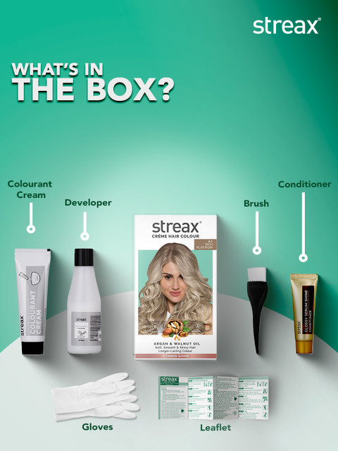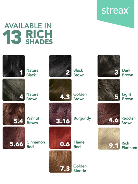 | Benefits | Get long lasting color in 3 easy stepsWith Streax Cream Hair Colour, get yourself the confident look and a passion to create something new.Streax Cream hair colour helps in adding a shiny touchAvailable in 15 unique shades, it is enriched with Walnut and Argan oil &, provides gorgeous shine to your hair. |