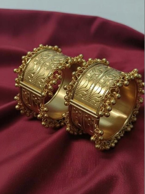 Set of 2 gold-plated bangles, each has ghungroo -studded details , each secured with slip-on closure