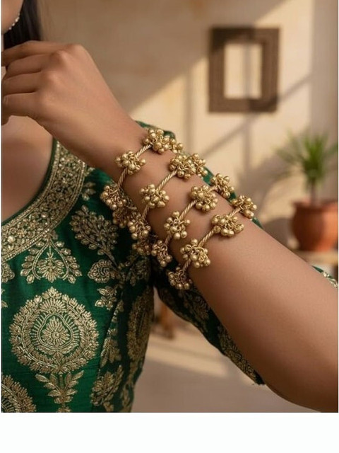 Set of 4 gold-plated bangles, each has ghungroo-studded details , each secured with slip-on closure