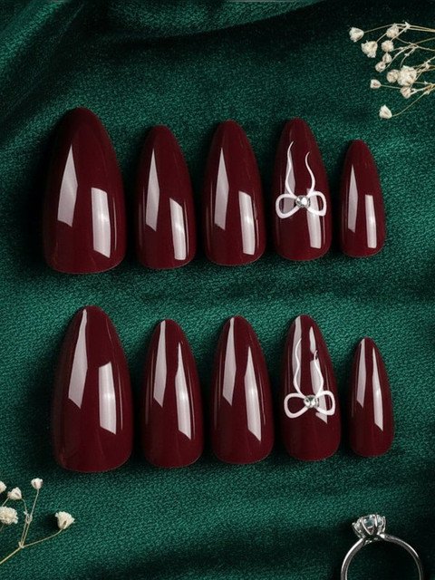 Set Of 24 Reusable Artificial Press On Nails – Maroon