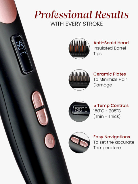 Ceramic coated plates to minimize hair damage Temperature controls Anti scald head/insulated barrel tipsAllows you to not only detangle your hair but also straighten them in one goYou can comb deep into the hair right from the roots to the tips without any fear of burning your scalp