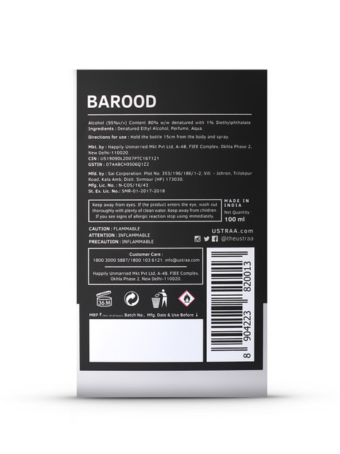 Ustraa Men Barood EDP is a strong, masculine fragrance with a bold personality. The longevity is impressive—it easily lasts 6–8 hours, and the projection is good without being too overpowering if applied properly. The bottle design is also solid and stylish.