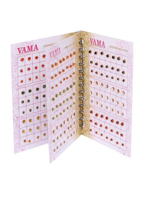 VAMA Multicolored Stone Small Bindis Sindoor Kumkum Sticker features a vibrant 252-Piece Mini bindi book with sizes ranging from 2.5mm-3.5mm, perfect for adding a traditional touch to any occasion.