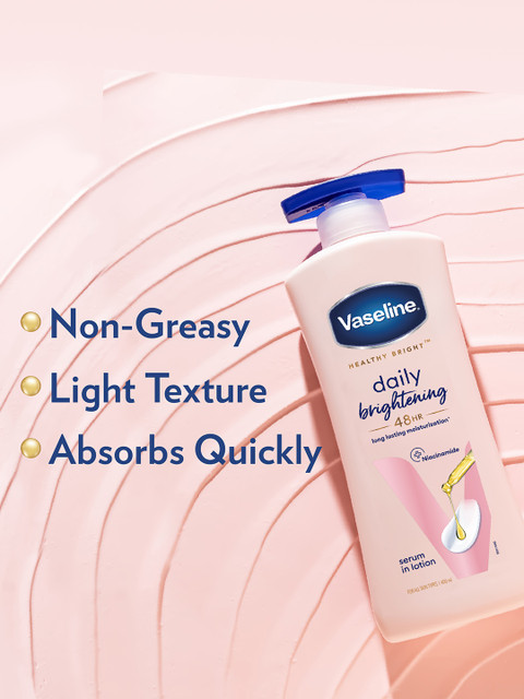 Vaseline’s Daily Bright Lotion is a fan favorite! 😍 It’s a lightweight, non-greasy moisturizer that absorbs quickly into the skin, making it perfect for daily use. The lotion contains Vitamin B3, which helps inhibit melanin production, reducing dark spots and evening out skin tone. It’s also packed with triple sunscreens to protect your skin from UVA and UVB rays ¹ ² ³.