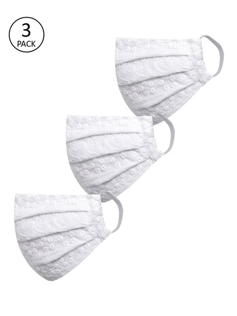 Adults White Embroidered 2 Pcs Reusable 2-Ply Protective Cloth Masks