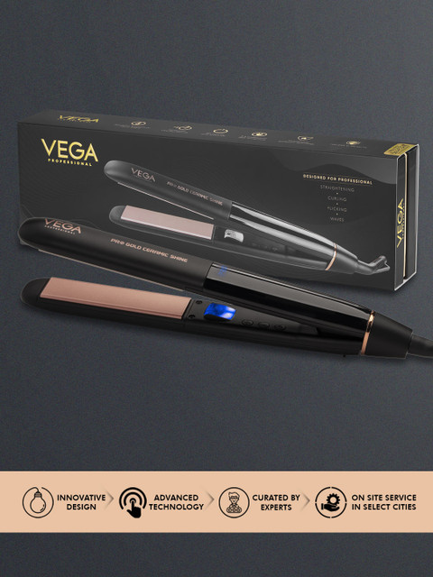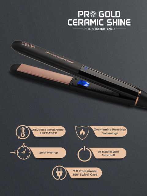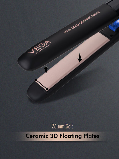 | Special Features | Vega Professional Pro Titanium Magic hair straightener is designed for professionals keeping in mind the best of styling needs, it is equipped with 30mm argan oil infused beveled edged titanium floating plates recommended for keratin and rebonding smoothing due to perfect resistance to the chemical treatments.The advanced technology emits gentle, far-infrared heat that is kinder to hair and eliminates frizz.It gets quickly heated up and the adjustable temperature setting allows the professional to have precise control from 160degC to 240degC.The 60-minute automatic safety cut-off prevents overheating.The 360deg swivel 9 ft power cord rotates to prevent twisting and tangling while using the straightener for faster and easier styling30mm wide titanium platesArgan oil infused floating titanium plates"Adjustable temperature regulator (160degc-240degc)"Lcd temperature display60 min. Automatic shut off2.8m long professional swivel cord100-240v, 50/60hz, 70w |