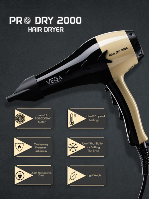 | Special Features | The VEGA Professional Mighty Mini Dryer is the perfect travel companion for a salon-like blowout on the go.This compact and light professional hair dryer flaunts a power of 220-240V, 50/60Hz 1000-1200W.The tourmaline technology leaves you with shiny smooth hair while 2 heat/speed settings provide strong airflow.The concentrator nozzle and 2.0m long professional cord make for quick styling on busy trips. |