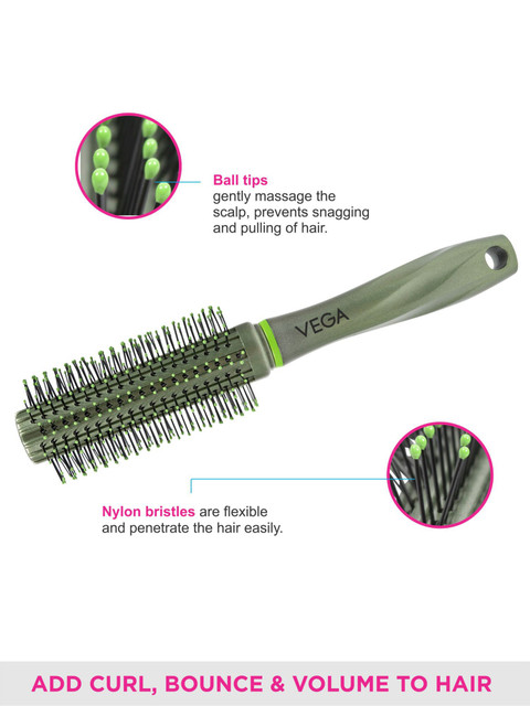 What It Is: Round Hair Brush To Add Perfect Curls To Your Hair &nbsp, Collection Name: Round Features:Ideal To Add Curl, Curve And Volume To HairBall Tipped Nylon Bristles Gently Massage The Scalp And Add Root LiftSuitable For All Hair TypesMostly Available In Round And Vented Round Shapes