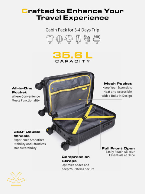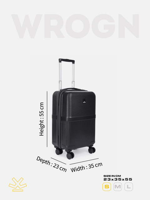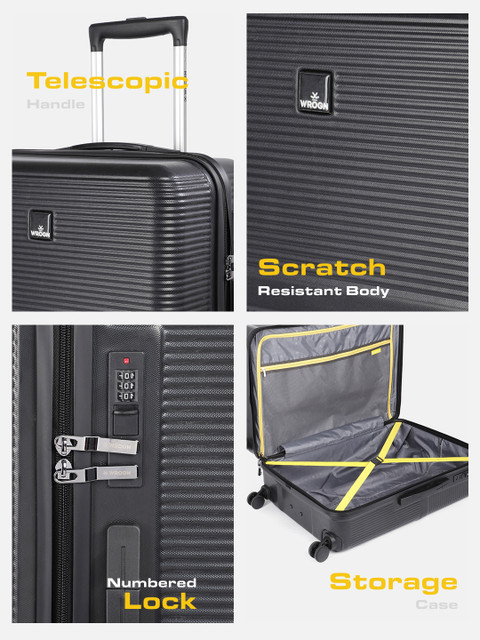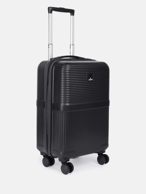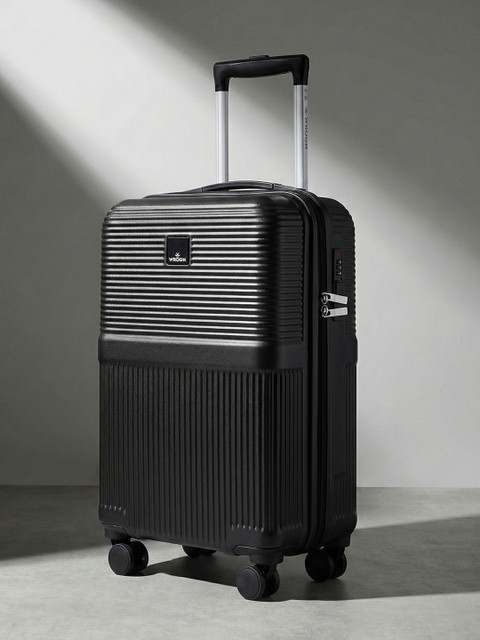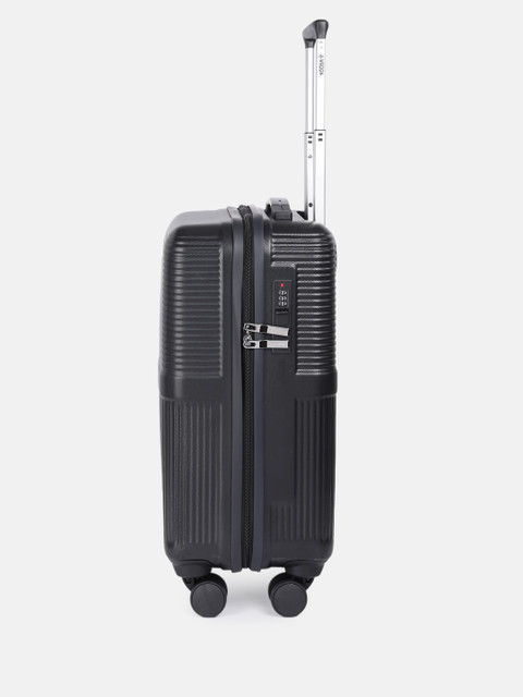 Black textured cabin hard trolley suitcase, secured with a combination lock